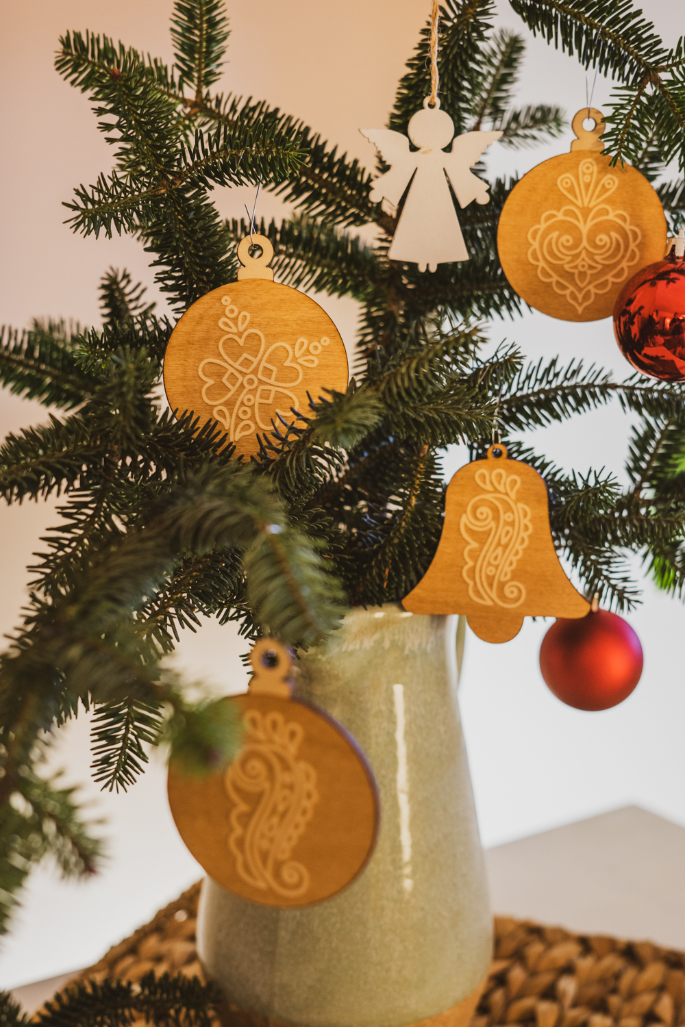 | Ornament | Zvoneček – jatelinka, Zvoneček – hrášek, Zvoneček – srdéčko, Baňka – jatelinka, Baňka – hrášek, Baňka – srdéčko |